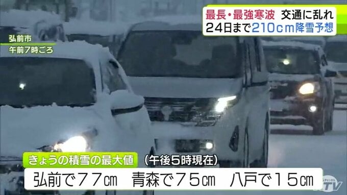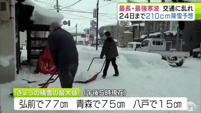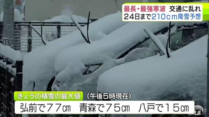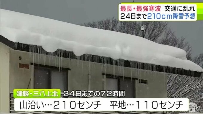 【雪の予想・21日午後9時半現在】青森県はどうなる? 日本に居座る今季最強・最長寒波 24日までの72時間で津軽・三八上北の山沿いで210cm・平地で110cmの降雪予想 大雪シミュレーションあり 2時間前
