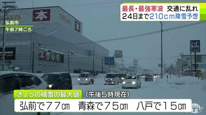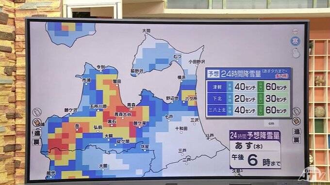 【雪の予想・21日午後9時半現在】青森県はどうなる? 日本に居座る今季最強・最長寒波 24日までの72時間で津軽・三八上北の山沿いで210cm・平地で110cmの降雪予想 大雪シミュレーションあり 青森テレビ 2026年1月21日(水) 21:35 国内 ♦大雪・雨・風の予想シミュレーションを見る (21~22日・23日・24日・25日・26~27日) ♦記事を最初から読む