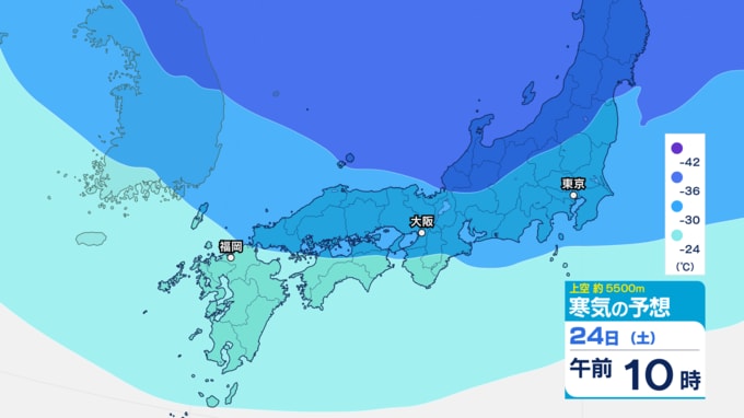 気象庁によりますと、北日本から東日本の上空約5000メートルには、氷点下42度以下の強い寒気が流入しており、西日本から北日本の日本海側では雪雲が発達して強い雪が降っています。