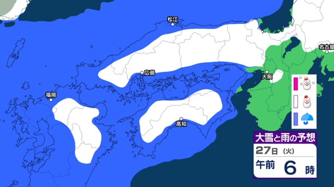 【中国・四国の雪予想】日本海側で警報級大雪、多い所で60cm 平地でも積雪となる所も【気象庁・大雪に関する全般気象情報・雪の最新シミュレーション】