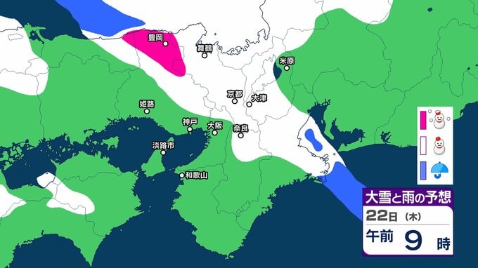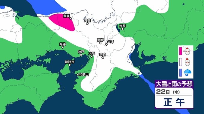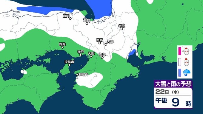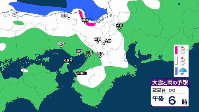 22日6時から23日6時までに予想される24時間降雪量は多い所で、