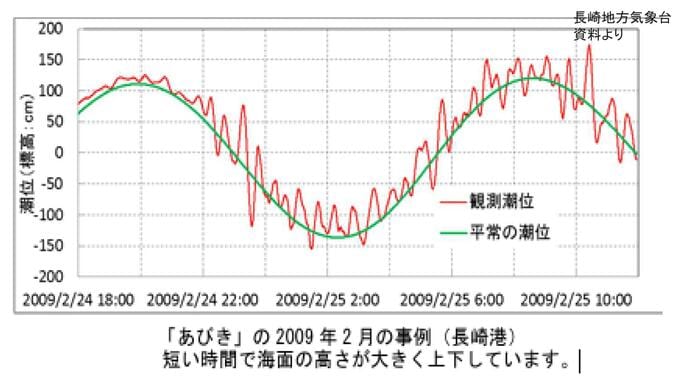 「あびき」とは、通常の満潮・干潮よりも短い周期(数分〜数十分)で繰り返される潮位の振動です。