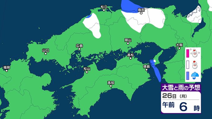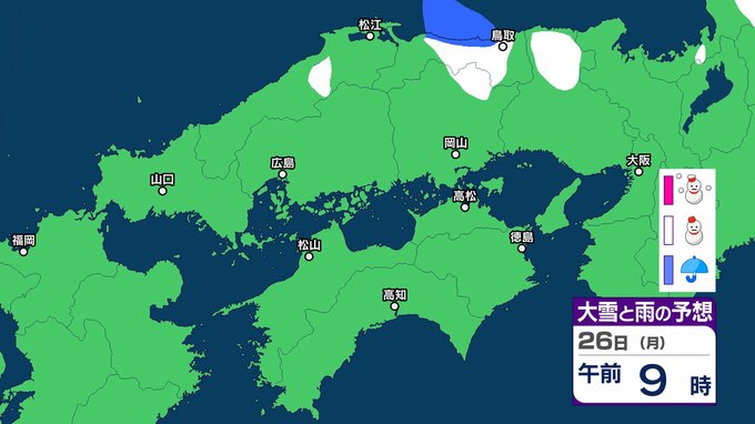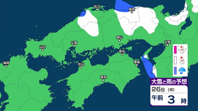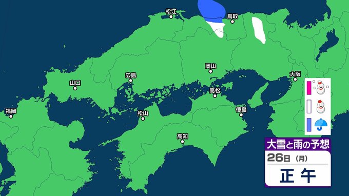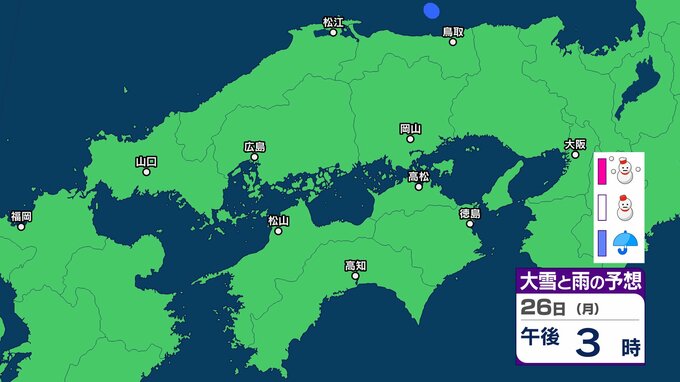 【中国・四国の雪 どうなる?】山陰は警報級の大雪、山陽北部で大雪のおそれ...四国地方は平地でも積雪の可能性 22日(木)~27日(火)にかけての雪雨シミュレーション【気象庁 22日現在】 RSK山陽放送 2026年1月22日(木) 10:24 国内 天気 26日(月) ▶中国・四国地方の雪雨シミュレーション