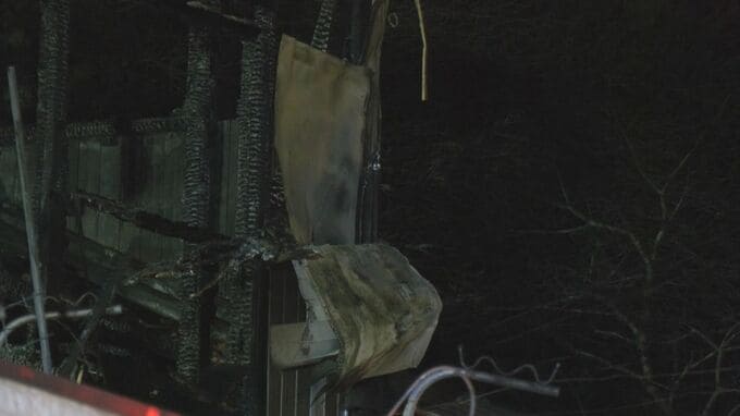 消防車など13台が出動し、火は約5時間後に消し止められましたが、この火事で木造2階建ての住宅が全焼しました。消防によりますと、焼け跡から年齢や性別のわからない2人の遺体が見つかったということです。