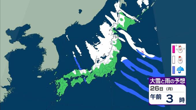 大雪警報発表中!京都や滋賀で「今後の雪予想」どうなる? 彦根市では25cmの降雪 気象台が「顕著な大雪に関する気象情報」発表 毎日放送 2026年1月22日(木) 12:04 国内 天気 【画像を見る】26日(月)の雨と風のシミュレーション