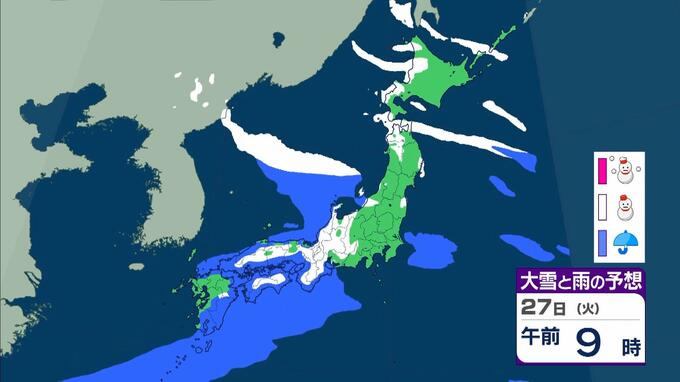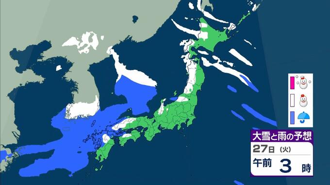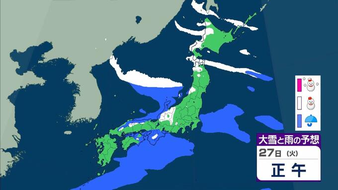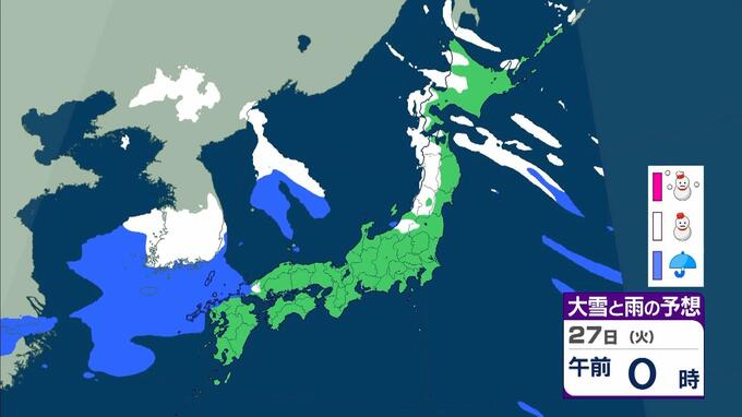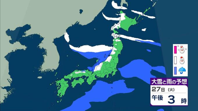 大雪警報発表中!京都や滋賀で「今後の雪予想」どうなる? 彦根市では25cmの降雪 気象台が「顕著な大雪に関する気象情報」発表 毎日放送 2026年1月22日(木) 12:04 国内 天気 【画像を見る】27日(火)の雨と風のシミュレーション