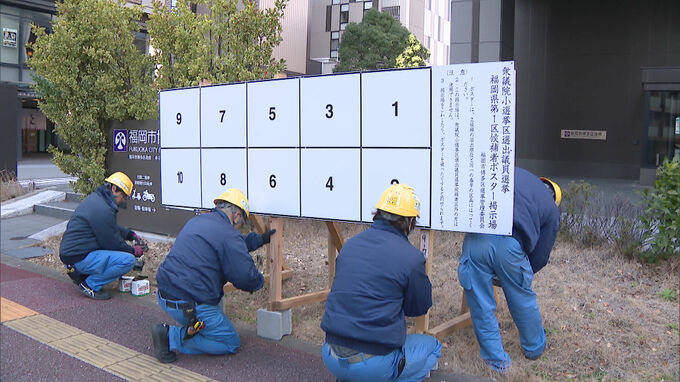 2月8日投開票の衆議院選挙に向けて候補者のポスターを貼る掲示板の設置が福岡市でも始まりました。福岡市の博多区役所の前では、22日午前9時半から、ポスター掲示板の設置作業が始まりました。福岡市では、1月26日…