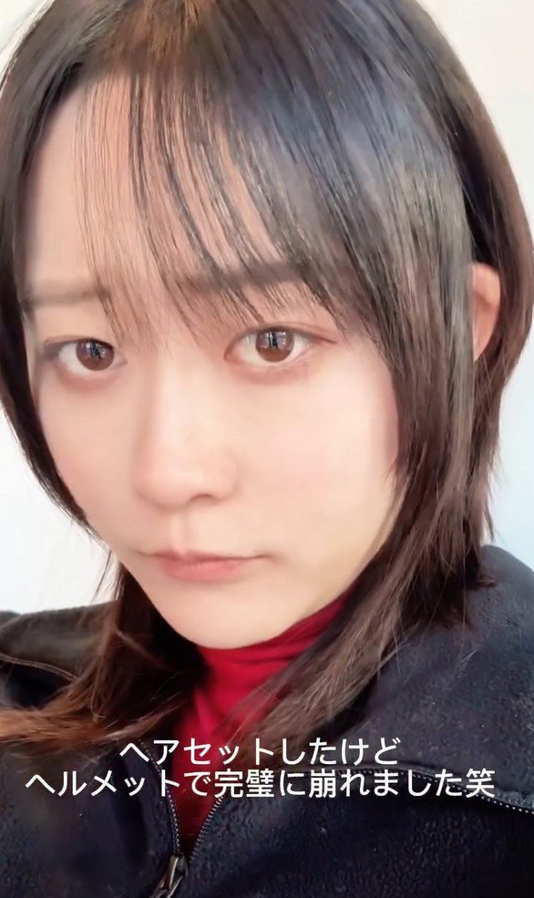 それでも「ヘアセットしたけどヘルメットで完璧に崩れました笑」とバイク女子ならではの悩みを吐露。