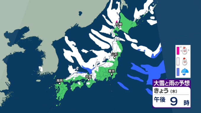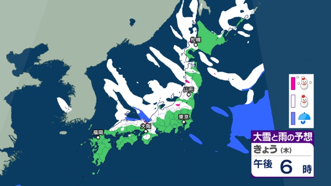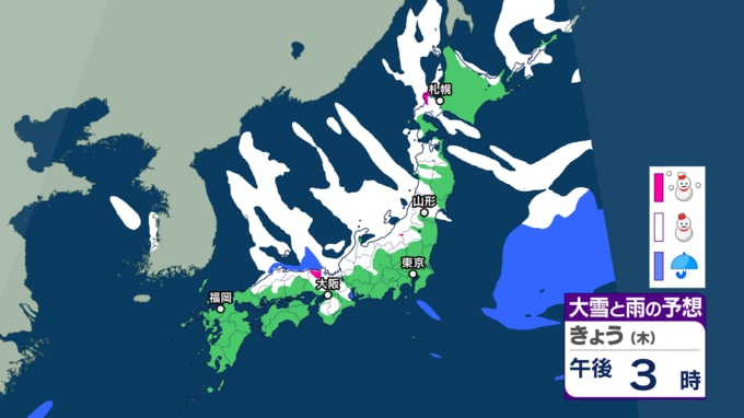 寒波襲来 いつ・どこで雪降る?【22日~25日の降雪シミュレーション】平地でも大雪に...北日本から西日本の日本海側を中心に25日頃にかけて 各地方の24時間予想降雪量は? 東北の天気はどうなる? 大雪情報 気象庁 テレビユー山形 2026年1月22日(木) 15:00 国内 ■雪と雨のシミュレーション(画像) 22日の雪と雨の予報