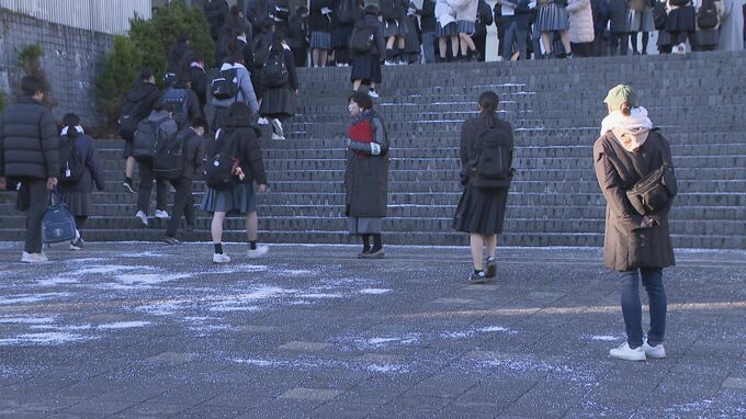 「雪の可能性があるということで、受験生のみなさんにけがが無いよう融雪剤を正門前にまきました」