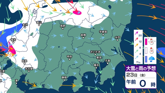 雪は関東甲信地方でも予想されています。