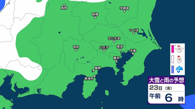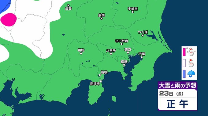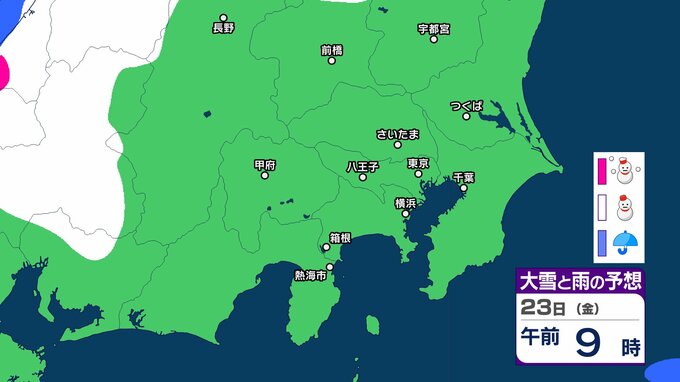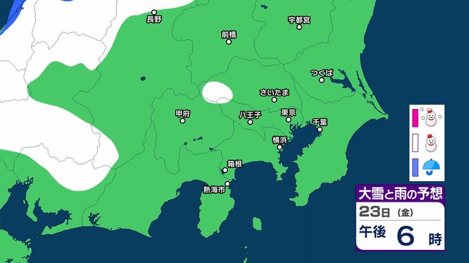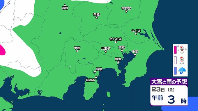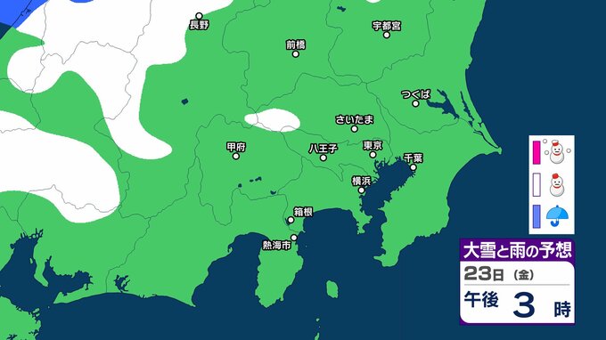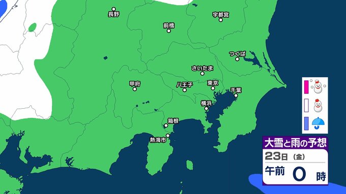 【東京の雪予想】24日(土)東京・埼玉で雪雲が…首都圏の今後の雪はどうなる? 23日(金)午前6時まで関東地方北部の多いところで30cmの降雪予想も 22日(木)~27日(火)東京、横浜、埼玉、千葉、茨城など首都圏の雪雨シミュレーション【気象庁/22日現在】 RSK山陽放送 2026年1月22日(木) 15:49 国内 天気 23日(金) 23日(金)のシミュレーションでは埼玉県と東京都、山梨県、静岡県、長野県の一部地域で雪雲がみられます。 【画像を見る】27日までの雪シミュレーション 5 6 7 8 9 10 11 ▶雪と雨のシミュレーション