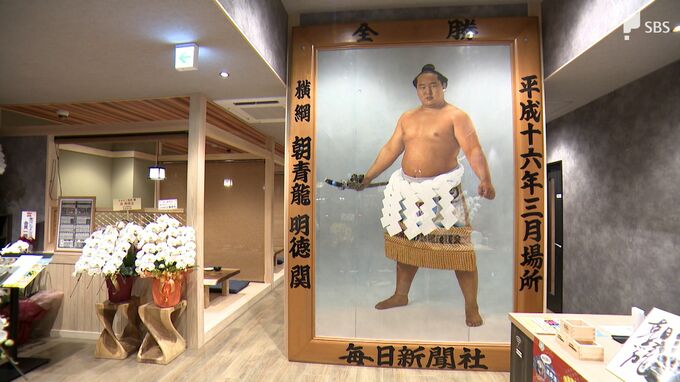 店内に飾られた「朝青龍の優勝額」