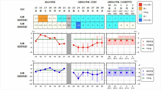 1月29日頃から近畿で-2.2℃以下 北陸-2.1℃以下、東海-2.0℃以下 かなりの低温になる見込み 関東甲信、東北、中国、四国もなども平年より低いか 【早期天候情報・2週間気温予報】