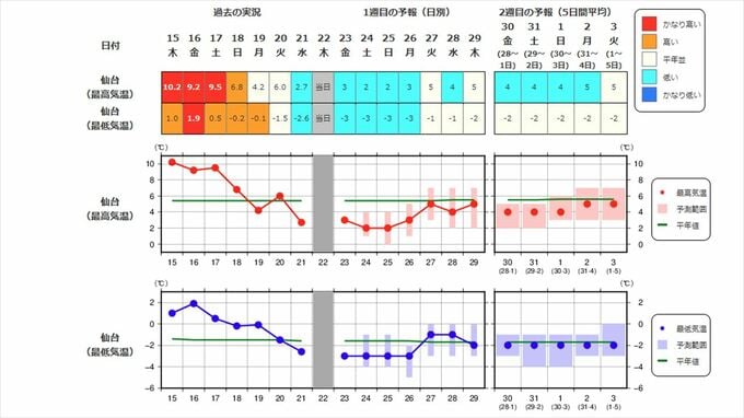 【2週間気温予報】 東京、甲府