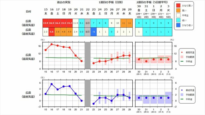 1月29日頃から近畿で-2.2℃以下 北陸-2.1℃以下、東海-2.0℃以下 かなりの低温になる見込み 関東甲信、東北、中国、四国もなども平年より低いか 【早期天候情報・2週間気温予報】 テレビ山梨 2026年1月22日(木) 16:10 国内 天気