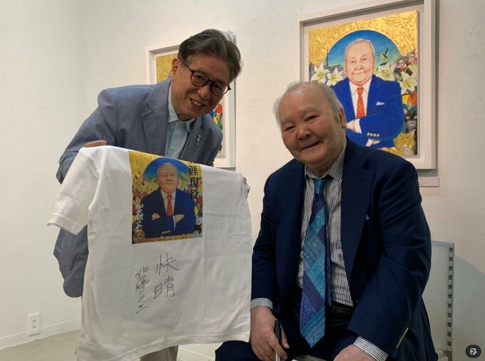 森田さんは、日本画の展覧会で加藤さんと同席。「生涯現役」という言葉が添えられた加藤さんの肖像画がプリントされたTシャツに直筆サインをもらった森田さんが、加藤さんと②ショットに収まっている、にこやかな写真を投稿しています。