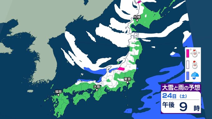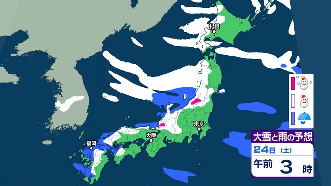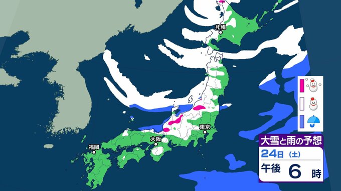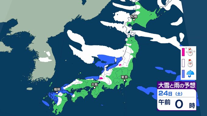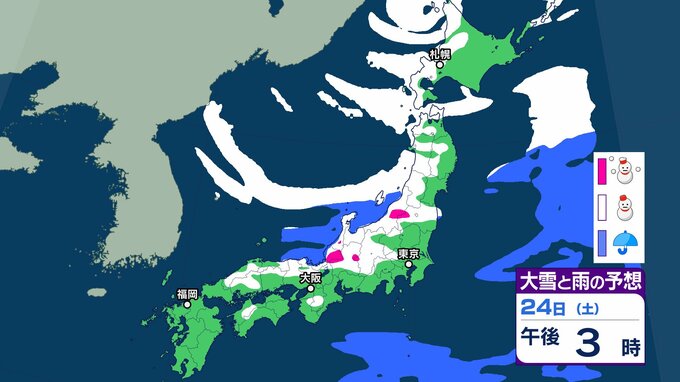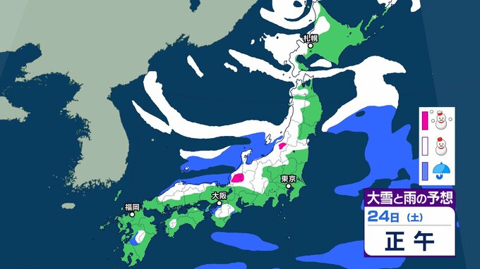 24日18時から25日18時までに予想される24時間降雪量は多い所で、