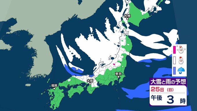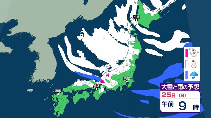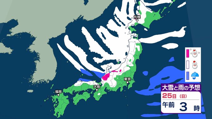 【雪の予想】衆議院選挙公示日の27日(火)は近畿・北陸・四国・九州など広い範囲で雪か…今後の雪はどなる? 22日(木)~27日(火)雪雨シミュレーション【気象庁 22日現在】 RSK山陽放送 2026年1月22日(木) 18:38 国内 天気 25日(日) 気象庁によりますと、25日頃にかけて北日本から西日本の日本海側を中心に大雪が続くため、総降雪量がかなり多くなる所があるということです。 27日までの雪シミュレーション ▶22日(木)~27日(火)雪雨シミュレーション