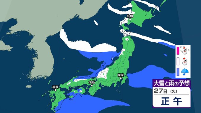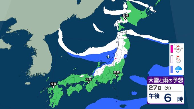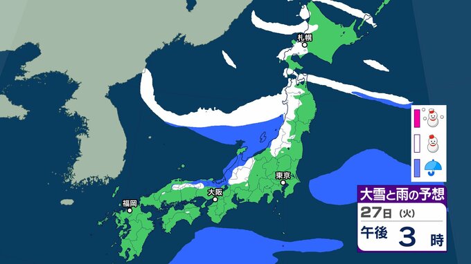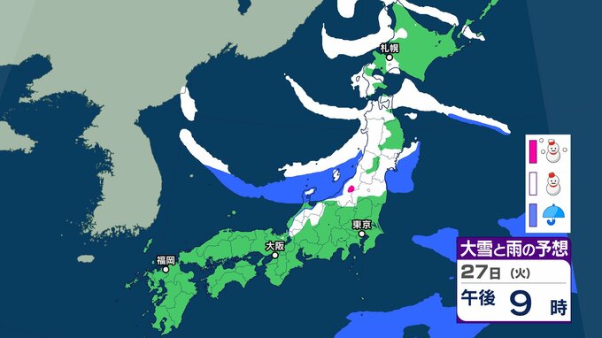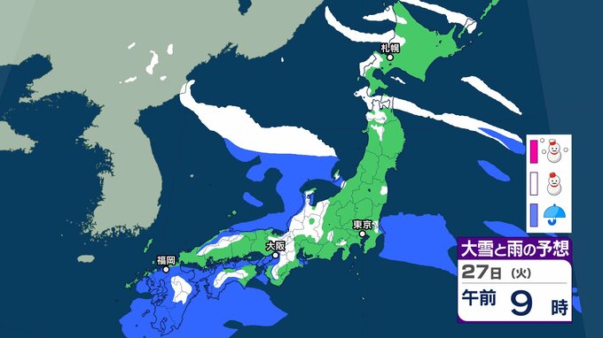 【雪の予想】衆議院選挙公示日の27日(火)は近畿・北陸・四国・九州など広い範囲で雪か…今後の雪はどなる? 22日(木)~27日(火)雪雨シミュレーション【気象庁 22日現在】 RSK山陽放送 2026年1月22日(木) 18:38 国内 天気 27日(火) ▶22日(木)~27日(火)雪雨シミュレーション