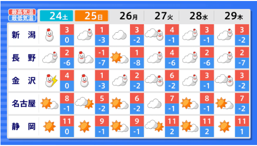【2週間気温予報】東北地方と東・西日本の向こう2週間の気温は低い日が多くかなり低い日も 1月25日頃にかけて日本海側を中心に大雪の可能性 農作物の管理等に注意 全国の天気を地方ごとに 気象庁 テレビユー山形 2026年1月22日(木) 17:30 国内 ■全国の天気を地方ごとに(画像) 画像はTBS NEWS DIG Powered by JNNより 画像ありの記事を最初から https://newsdig.tbs.co.jp/articles/-/2418299?display=1