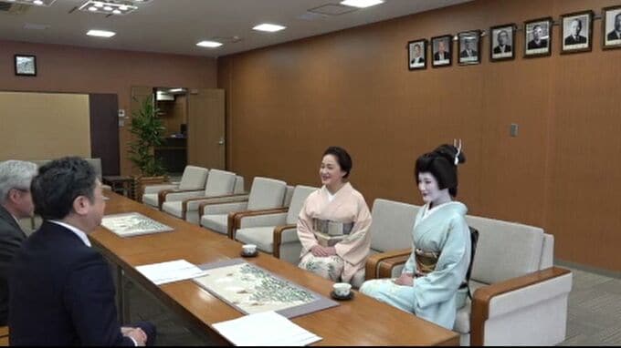 石川県金沢市の茶屋街のひとつ、主計町の新人芸妓=新花としてデビューする、「絹夕」さんが22日、金沢市役所を訪れ、抱負を語りました。