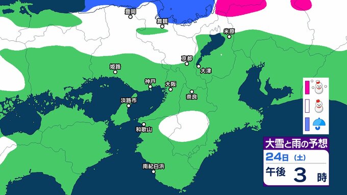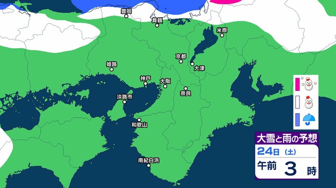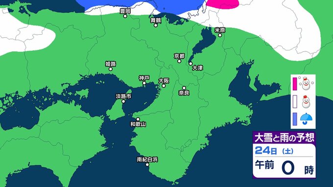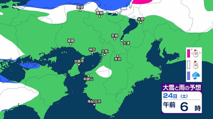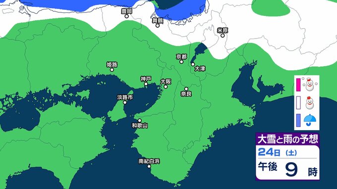 【関西の雪 どうなる?】近畿北部を中心にあす(23日)明け方にかけて大雪のおそれ 近畿北部平地 40センチ、中部平地10センチの降雪予想 路面の凍結など交通障害に注意・警戒を 22日(木)~27日(火)大阪、京都、神戸、奈良、滋賀、和歌山の雪雨シミュレーション【気象庁 21日現在】 RSK山陽放送 2026年1月22日(木) 17:02 国内 24日(土) ▶近畿地方の雪雨シミュレーション