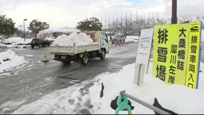 大雪に伴い金沢市内7か所には排雪場が開設され、大桑地区には雪を積んだトラックが次々と入ってきていました。金沢テクノパークなど、一部の雪捨て場では24時間体制で大型のダンプカーも受け入れるということです。