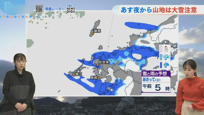 平地では雨で降る時間帯もありますが、降り始めは雨でも徐々に雪に変わる可能性があります。