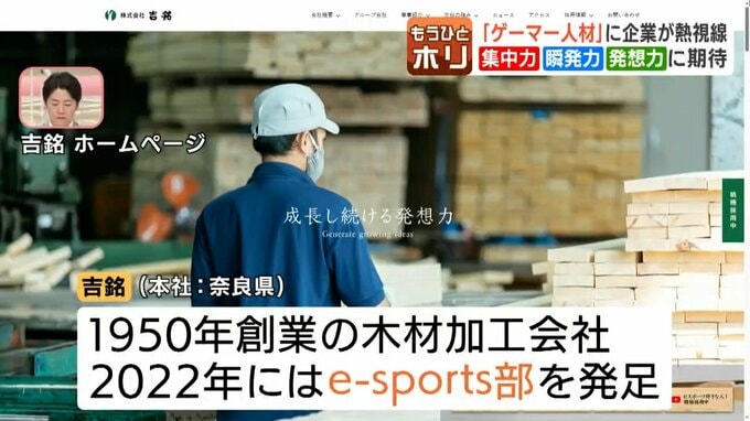 奈良県の木材加工会社「吉銘」は4年前、社内にe-sports部を発足させ、ゲーマーを積極的に採用しています。