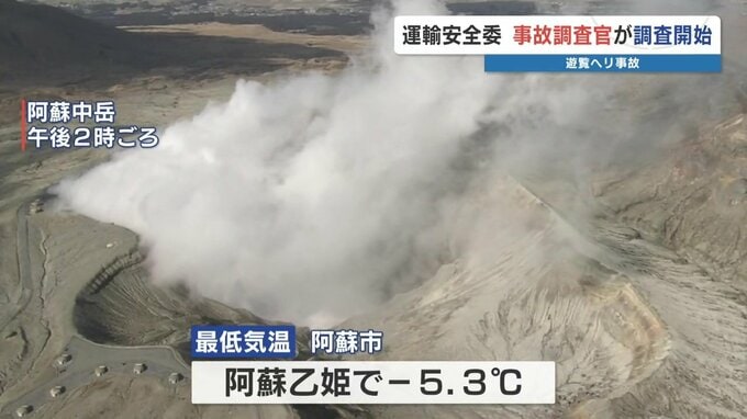 遊覧ヘリコプターが行方不明になり、阿蘇中岳の火口で機体が見つかった航空事故で、1月22日も朝から行方不明者の捜索などが行われました。また、国の運輸安全委員会の調査官が現地調査を始めました。