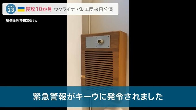 「緊急警報がキーウに発令されました。地下の廊下へ避難してください」