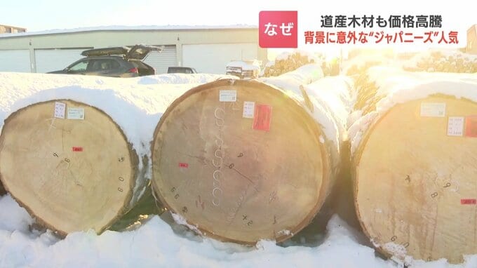 物価高が続く中、北海道産を含む木材価格も高止まりしています。北海道旭川市で行われた丸太の販売会を取材しました。馬場佑里香 記者「あたり一面に木のいい匂いが漂っています。メジロカバにニレ、ナラなど色々…