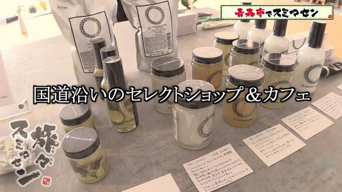以前も立ち寄ったことがあるセレクトショップ&カフェです。店内には洗練された雑貨並んでいて、川口さんはフレグランスコーナーで香りを確かめている様子。