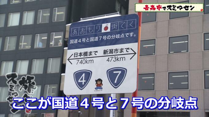 「この標識見て欲しいんですが、ここが国道4号と7号の分岐点なんです」