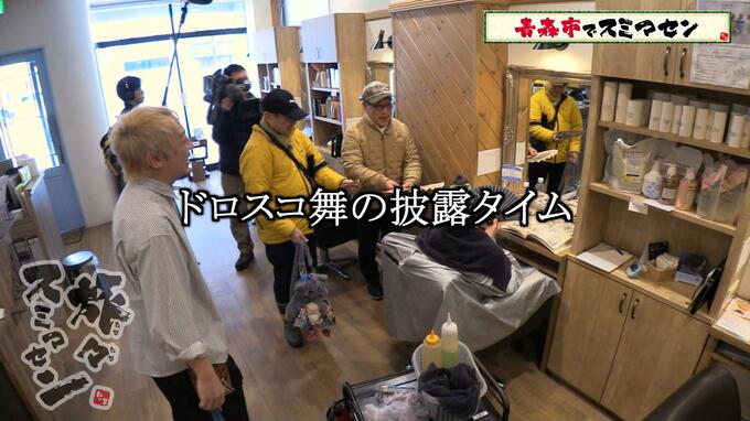 施術中のお客さんと楽しくおしゃべりをし、恒例のドロスコ舞を披露した2人。店主は「縁起がよさそうですね」と喜んでくれました。