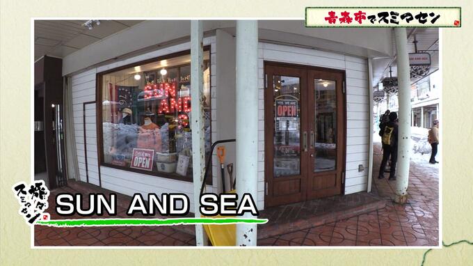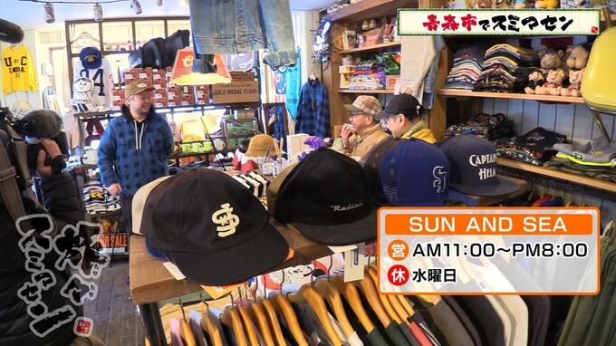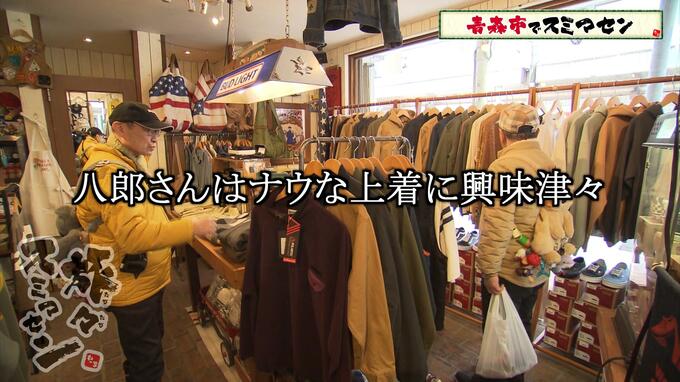 続いては、ブティックへ。キッズ、メンズ衣料、古着やアクセサリーのお店です。八郎さんはナウな上着に興味津々のよう。