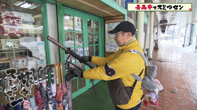 続いて2人は雑貨店へ。川口さん、店先で日本刀の形をした傘を見つけました。お店の方の話では、外国人観光客向けに置いている商品だそうです。ユニークな商品がたくさん置いてありました。