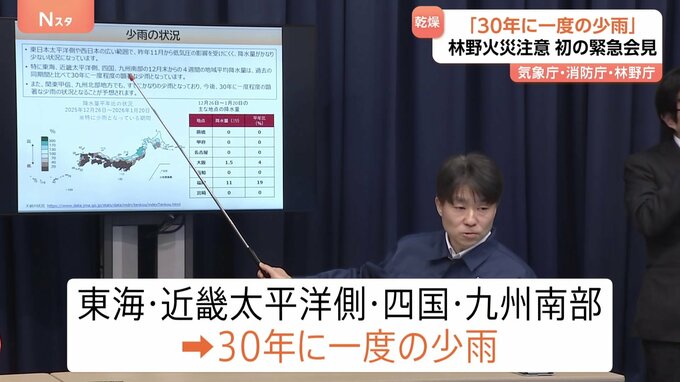 「30年に一度の少雨」で林野火災に注意を…。気象庁は初めて、消防庁や林野庁と緊急会見を行いました。今月8日に山梨県で起きた林野火災。火は一時、住宅までおよそ50メートルに迫りました。発生から2週間。火の勢…