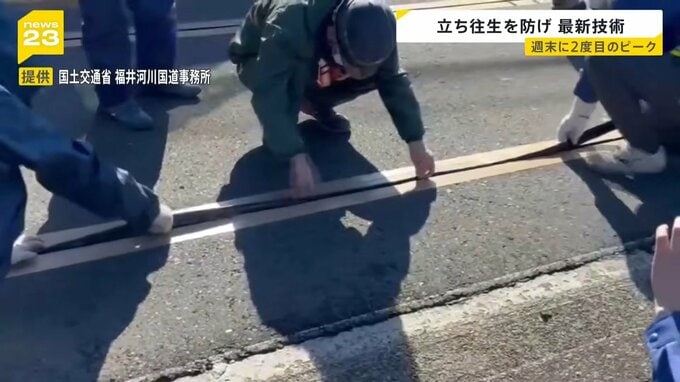 一方、今回採用されたのは「わだち部分」に切れ込みを入れ、そこに発熱シートを入れる工法。従来よりも費用がおよそ2割削減され、施工日数は4分の1に短縮されます。