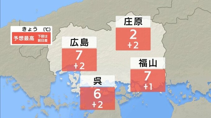 日中の気温は、沿岸部で6℃~7℃くらい きのうよりやや高いですが、引き続き真冬の厳しい寒さが続きます。万全の防寒対策をしてお出かけください。