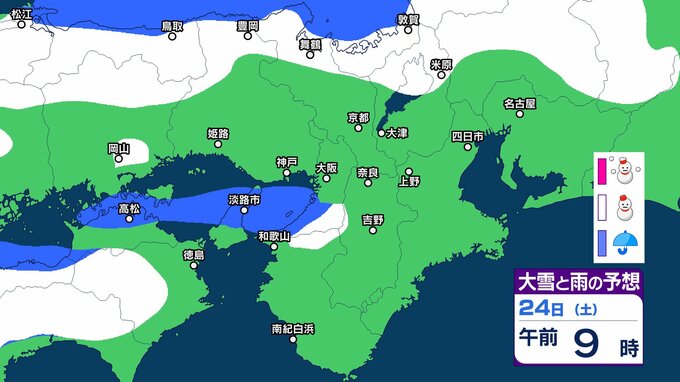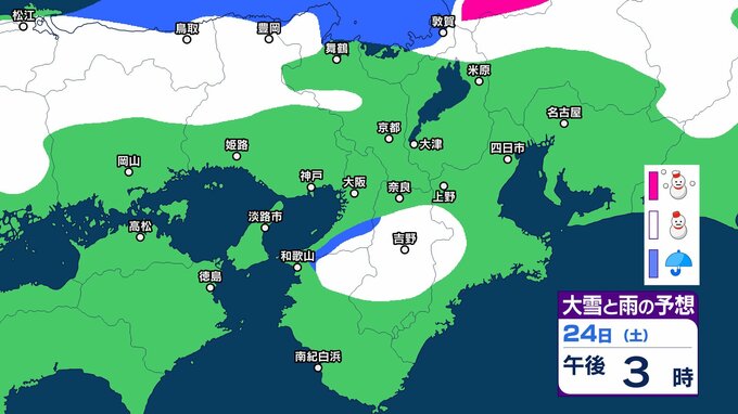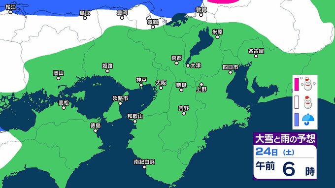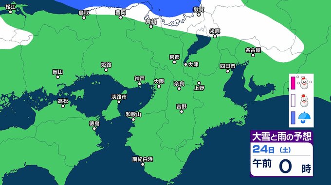【関西の雪どうなる?】降雪のピークは過ぎるも、近畿北部では今夜遅くにかけて寒気の影響が残る見込み 近畿北部山地は40センチの降雪予想 雪はいつ、どこで降る?大阪・京都・神戸・滋賀・奈良・和歌山 23日(金)~28日(水)雪雨シミュレーション【気象庁 23日現在】 RSK山陽放送 2026年1月23日(金) 09:45 国内 天気 24日(土) ▶23日(金)~28日(水)近畿地方の雪雨シミュレーション画像
