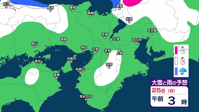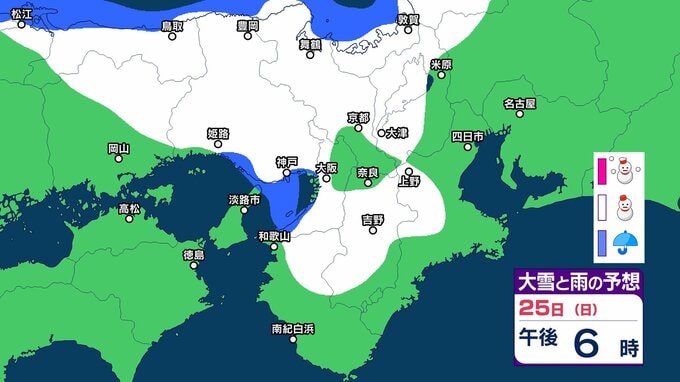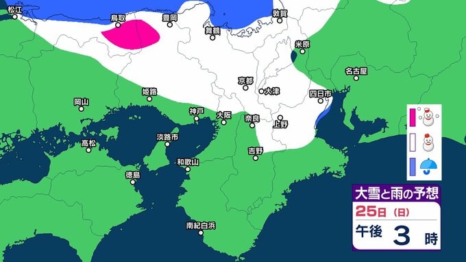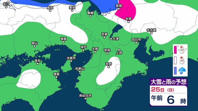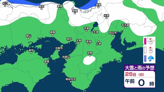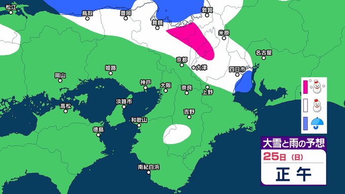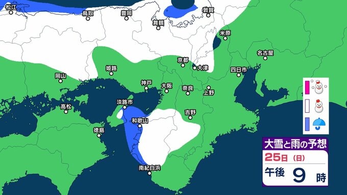 【関西の雪どうなる?】降雪のピークは過ぎるも、近畿北部では今夜遅くにかけて寒気の影響が残る見込み 近畿北部山地は40センチの降雪予想 雪はいつ、どこで降る?大阪・京都・神戸・滋賀・奈良・和歌山 23日(金)~28日(水)雪雨シミュレーション【気象庁 23日現在】 RSK山陽放送 2026年1月23日(金) 09:45 国内 天気 25日(日) ▶23日(金)~28日(水)近畿地方の雪雨シミュレーション画像