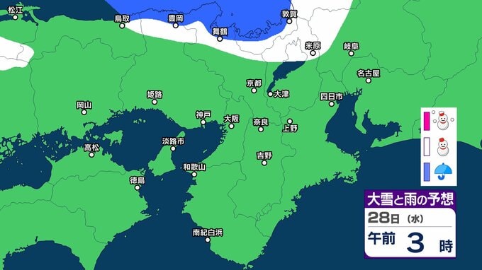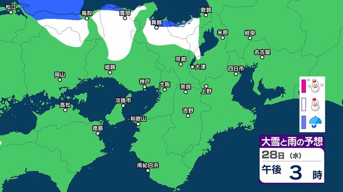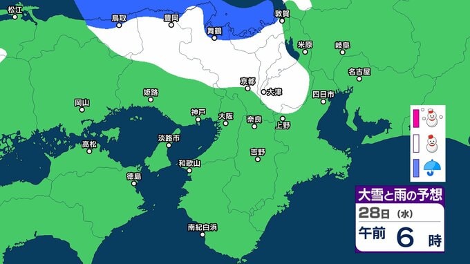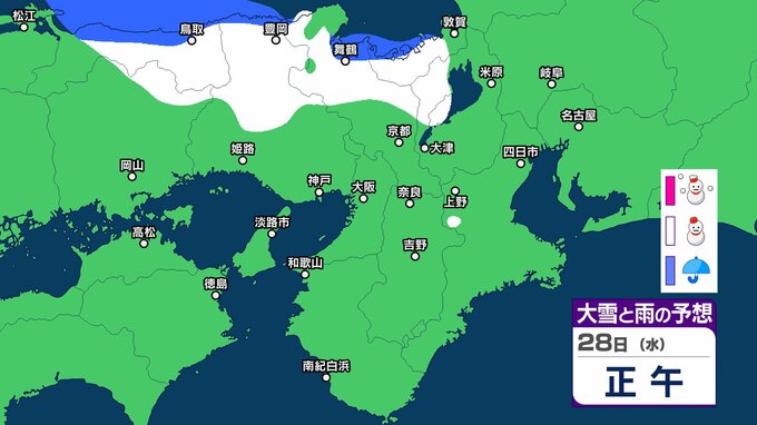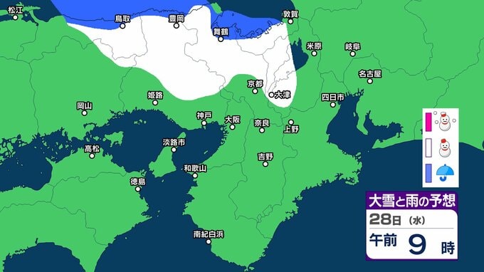 【関西の雪どうなる?】降雪のピークは過ぎるも、近畿北部では今夜遅くにかけて寒気の影響が残る見込み 近畿北部山地は40センチの降雪予想 雪はいつ、どこで降る?大阪・京都・神戸・滋賀・奈良・和歌山 23日(金)~28日(水)雪雨シミュレーション【気象庁 23日現在】 RSK山陽放送 2026年1月23日(金) 09:45 国内 天気 28日(水) ▶23日(金)~28日(水)近畿地方の雪雨シミュレーション画像