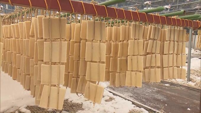 福島市の立子山地区では、特産品の凍み豆腐作りが最盛期を迎えています。平岡沙理アナウンサー「小雪が舞う中、ズラッと並ぶこちら。いま、凍み豆腐作りが最盛期を迎えています」ずらりと並んだ、豆腐のカーテン。…