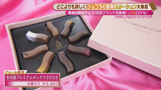 愛知のクラフトジンや三重のマイヤーレモンなど、東海地方の素材をふんだんに使ったボンボンショコラ「名古屋プレミアムボックス2026」(8個入り 3,801円)はイチオシです。