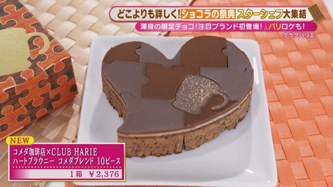 「コメダ珈琲店」のコーヒーとコラボした「コメダ珈琲店×CLUB HARIE ハートブラウニー コメダブレンド 10ピース」(1箱 2,376円)もオススメ。コメダ珈琲店で実際に使われているコーヒー豆や、山本シェフが好きなカフェオレ味にするためにミルクが使われています。