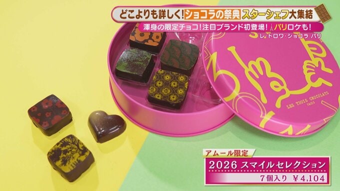 ピンクの缶がかわいらしい「2026 スマイルセレクション」(7個入り 4,104円)は、イチオシの限定品。