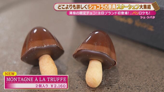 アムール売り上げ上位の常連「クラブハリエ」から、「きのこの山」とコラボした「MONTAGNE À LA TRUFFE」(2個入り 2,160円)が登場!高級食材・黒トリュフの2層ガナッシュと、ポルチーニ茸が練り込まれたシュクレのマリアージュは、ブルジョワすぎる逸品です。