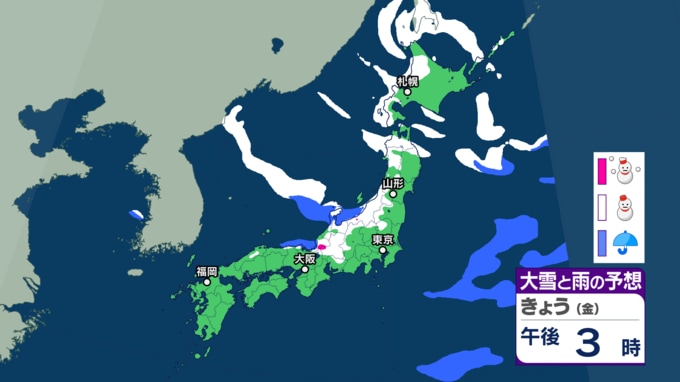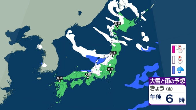 大雪情報 いつ・どこで雪降る?【23日~25日の降雪シミュレーション】寒波襲来で平地でも大雪に...北日本から西日本の日本海側を中心に25日頃にかけて 各地方の24時間予想降雪量は? 東北の天気はどうなる? 気象庁 テレビユー山形 2026年1月23日(金) 11:57 国内 ■雪と雨のシミュレーション(画像) 23日の雪と雨の予報